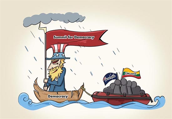 Le soi-disant ? Sommet pour la démocratie ? organisé par les états-Unis est-il vraiment pour la démocratie ? Selon la liste des participants publiée récemment, seuls quelques membres de plus de 200 pays et régions de la communauté internationale ont été invités à ce soi-disant ? Sommet pour la démocratie ?. La Chine et la Russie, deux puissances majeures, n'ont pas été invitées ; la plupart des pays européens sont invités, tandis que certains ? pays démocratiques ? certifiés par les états-Unis –des alliés de l'OTAN comme la Hongrie et la Turquie sont exclus ; parmi les pays du Moyen-Orient, seuls Isra?l et l'Irak ont été invités ; L'Inde, qui a été publiquement critiquée par le secrétaire d'état américain pour sa régression démocratique, a également re?u une invitation.