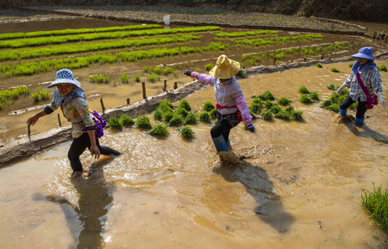 Des villageois travaillent dans une rizière du comté autonome Lahu de Lancang, dans la province du Yunnan (sud-ouest de la Chine). (Photo / Xinhua)