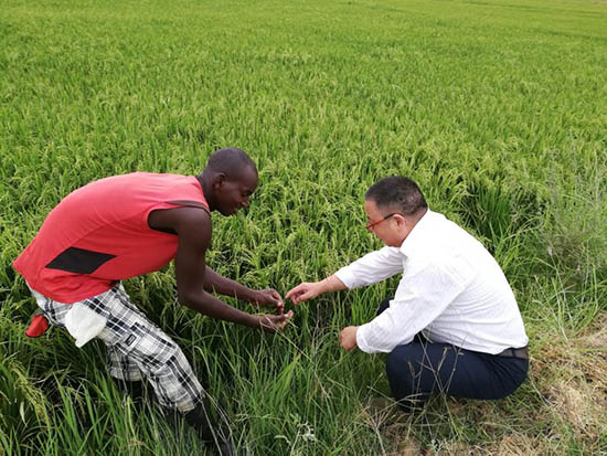 Le personnel du Groupe d'assistance technique agricole de Chine forme des techniciens locaux aux techniques de production agricole, le 24 juin 2019. (Photo publiée avec l'aimable autorisation de l'Ambassade de Chine au Sénégal)