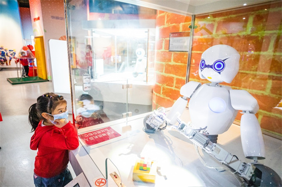 Une fillette visite le Musée des sciences et technologies de la ville de Bijie, dans la province du Guizhou (sud-ouest de la Chine), le 10 avril 2022. (Luo Dafu / Pic.people.com.cn)