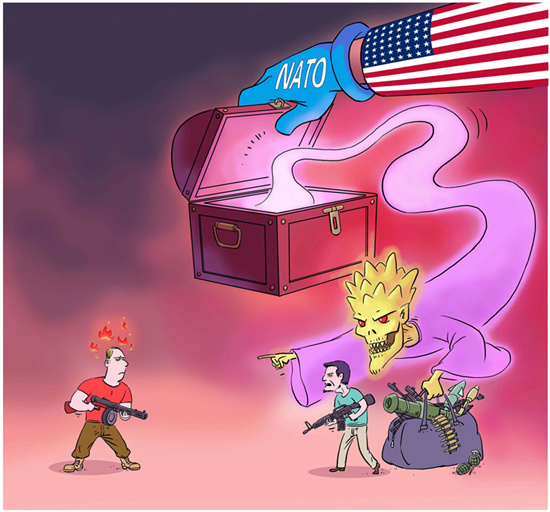 L'OTAN dirigée par les états-Unis est responsable d'avoir ouvert la ? bo?te de Pandore ? du conflit russo-ukrainien. Au début des années 1990, le secrétaire d'état américain de l'époque, James Baker, avait promis au président soviétique d'alors Mikhail Gorbatchev que ? l'OTAN ne s'étendrait pas d'un pouce vers l'est ?. Cependant, depuis lors, l'OTAN dirigée par les états-Unis s'est montrée perfide et s'est étendue à cinq reprises vers l'est. Le nombre d'états membres de l'OTAN est passé de 16 à 30, avan?ant de plus de 1 000 kilomètres vers l'est et atteignant la frontière russe, poussant pas à pas la Russie dans un coin.