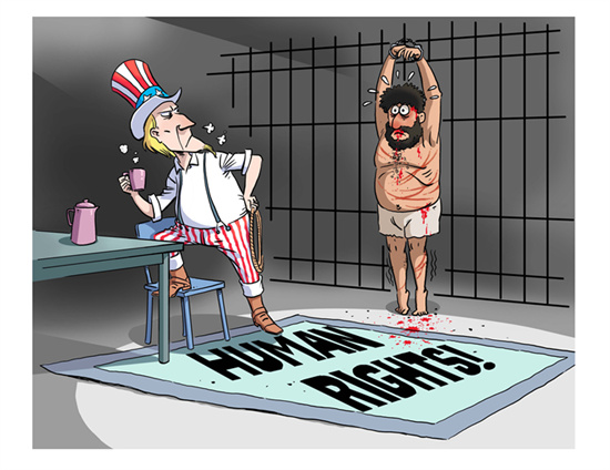 Sous couvert de la soi-disant ? guerre contre le terrorisme ?, la CIA a mis en place des ? prisons noires ? dans de nombreux pays du monde pour y détenir secrètement des soi-disant suspects de terrorisme, s'y livrant à des détentions arbitraires et extorquant des aveux par la torture. Le journal britannique The Guardian a rapporté qu'un rapport déclassifié du gouvernement américain a montré qu'un prisonnier avait même été utilisé comme ? outil pédagogique ? pour que les stagiaires apprennent la torture dans le centre de détention secret de la ? prison noire ? de la CIA en Afghanistan. Les ? méthodes d'interrogatoire améliorées ? de cette ? prison noire ? sont extrêmement cruelles : les prisonniers étaient soumis à des passages à tabac répétés, à la noyade, à la privation de sommeil, à des ? coups sur les murs ? et à des ? jets d'eau glacée ? et à d'autres tortures inhumaines, des actes particulièrement odieux.
