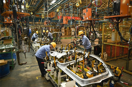 Le 5 septembre 2022, des employés du constructeur automobile chinois FAW Haima Automobile Co., Ltd. accélèrent la production des voitures destinées à être exportées aux Philippines dans la base de production de la société dans la province de Hainan (dans le sud de la Chine). (Shi Zhonghua/Pic.people.com.cn)