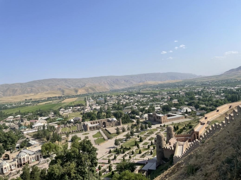 L'ancienne ville de Gisar, située au nord-ouest de Douchanbé, au Tadjikistan, a une histoire de plus de 3 000 ans. Certaines études pensent que Zhang Qian est passé par cet endroit en revenant de sa mission à Dawan. La photo montre la porte de la ville et la ville depuis le mur de l'ancienne ville de Gisar. (Qu Song / Xinhua)
