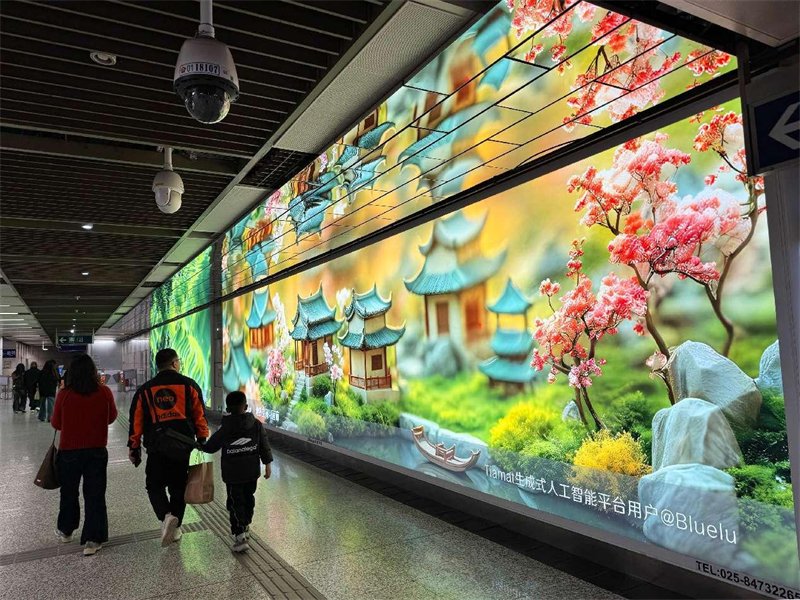 | Des images générées par intelligence artificielle affichées dans une station de métro de Nanjing, capitale de la province du Jiangsu (est de la Chine). (Wang Luxian / Pic.people.com.cn) |