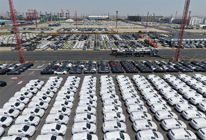 | Le 13 avril 2025, un grand nombre de véhicules à énergies nouvelles produits en Chine attendaient l'expédition à l'exportation au terminal automobile international de Shanghai Haitong. (Long Wei / Pic.people.com.cn) |
