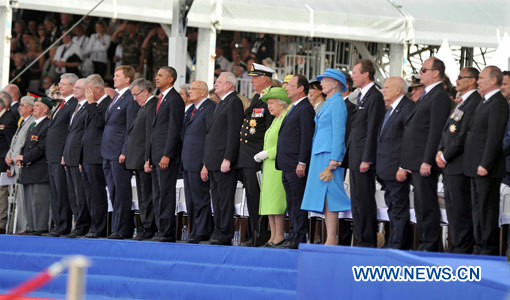 Point d'orgue des commémorations du 70e anniversaire du Débarquement, la cérémonie organisée à Ouistreham (Calvados, nord-ouest), sur la plage de Sword Beach, a débuté peu après 15H00, heure locale, en présence de 8.000 invités, notamment une vingtaine de chefs d'Etat et de gouvernement et quelque 2.000 anciens combattants.