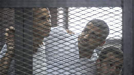 Trois journalistes d'Al Jazeera ont été condamnés chacun à sept ans de prison en Egypte après avoir été reconnus coupables d'aide au terrorisme. L'Australien Peter Greste, le Canado-égyptien Mohammed Fahmy et l'Egyptien Baher Mohamed ont assisté au prononcé du verdict depuis les cages où ils se trouvaient, qui les a reconnus coupables de diffusion de fausses nouvelles et de soutien aux Frères Musulmans.