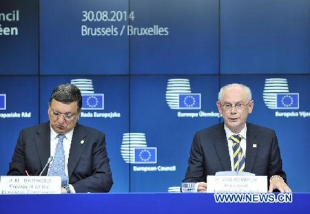 Il s'agit de la réaction de l'UE à la déroute des forces régulières ukrainiennes face aux contre-offensives des milices russophones dans l'est de l'Ukraine qui réclament son indépendance.