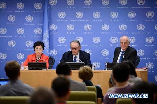 Le vice-secrétaire général de l'ONU, Jan Eliasson, la directrice générale de l'Organisation mondiale de la santé (OMS), Margaret Chan, et David Nabarro, le coordonnateur principal du dispositif de l'ONU pour lutter contre l'Ebola, étaient présents à une réunion d'information pour les Etats membres sur la réponses de l'ONU à l'épidémie d'Ebola en Afrique de l'ouest.