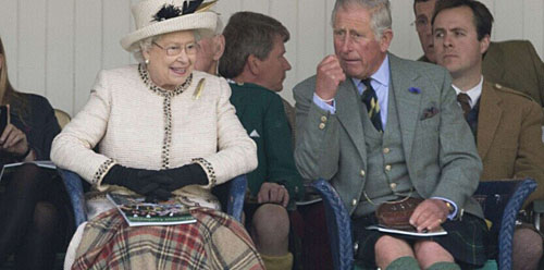 | La reine Elizabeth II et le prince Charles au rassemblement de Braemar Highland, en Ecosse, le 6 septembre 2014. |