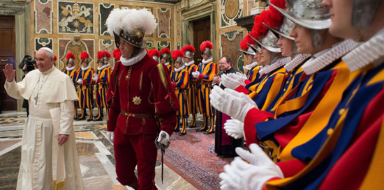 Malgré leur aspect chamarré et leur apparence surannée, qu'on ne s'y trompe pas, les Gardes suisses, si populaires auprès des touristes, sont tout sauf des amateurs. Comme il est précisé sur leur site Internet, ? Dans l'uniforme de la Renaissance traditionnelle se trouve un Suisse jeune, moderne et bien instruit. Il partage aujourd'hui encore avec son ancêtre du XVIe siècle la forte conviction que l'Eglise de Jésus-Christ et l'héritier de Saint Pierre méritent que l'on s'engage pour eux – s'il venait à être nécessaire, même donner sa propre vie pour eux ?.