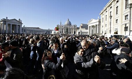 Des milliers de personnes se sont rassemblées sur la Place Saint-Pierre pour chanter ? joyeux anniversaire ? et danser un tango de masse afin de célébrer le 78e anniversaire du Pape Fran?ois. Le Saint-Père est né en Argentine, le berceau du tango le 17 décembre 1936. Mercredi, il a entendu des versions de ? Joyeux anniversaire ? en espagnol, italien et d'autres langues, alors qu'il traversait la Place Saint-Pierre au Vatican pour commencer son audience générale hebdomadaire.