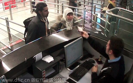 Le 12 janvier à Istanbul, en Turquie. Cette capture d'écran d'une vidéo de surveillance montre Hayat Boumedienne, la compagne d'Amedy Coulibaly, auteur de la prise d'otages sanglante du supermarché casher de la Porte de Vincennes à Paris à l'Aéroport international Sabiha G?k?en d'Istanbul. La police fran?aise a confirmé qu'Hayat Boumedienne a bien quitté Paris à destination la Turquie. Elle cherche maintenant à confirmer si elle est bien passée ou non en Syrie.