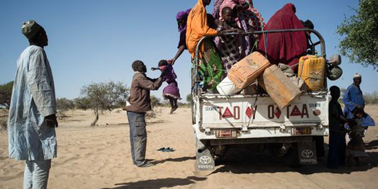 | Des réfugiés nigérians fuyant Boko Haram arrivent au Tchad. |