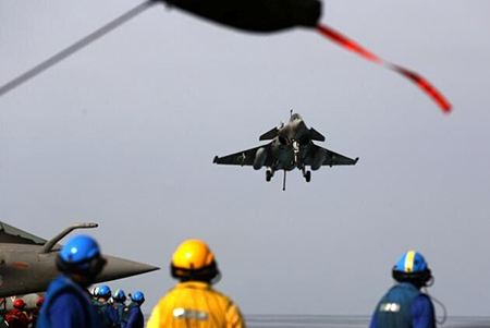 Un photographe de l'AFP embarqué sur le porte-avions a néanmoins pu constater que quatre Rafale avaient décollé le matin du navire, équipés de quatre bombes chacun, à guidage laser ou GPS, mais que deux seulement sont revenus sans aucune bombe ou avec seulement la moitié de leur charge initiale, sans que l'on sache encore pourquoi.