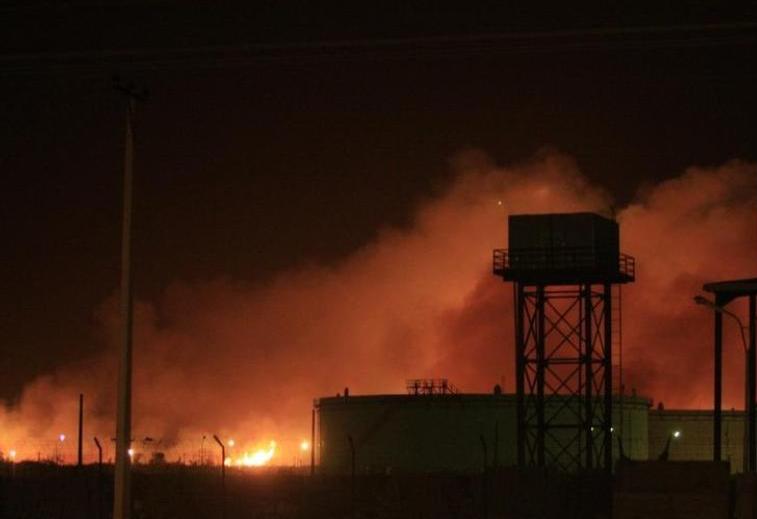 L'usine de fabrication d'armements de Yarmouk, au Soudan, en feu.
