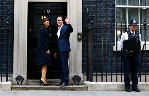 A la surprise générale, le Premier ministre David Cameron et son Parti conservateur ont remporté une solide victoire lors des élections générales britanniques de jeudi, avec des résultats lui donnant une majorité absolue au Parlement. Le résultat a défié les sondages pré-électoraux qui laissaient entendre une course serrée entre les conservateurs et le parti travailliste d'opposition. Elle renvoie M. Cameron au 10 Downing Street pour un second mandat. Comme le veut la tradition, il s'est rendu à Buckingham Palace vendredi à l'invitation de la Reine pour former un nouveau gouvernement.