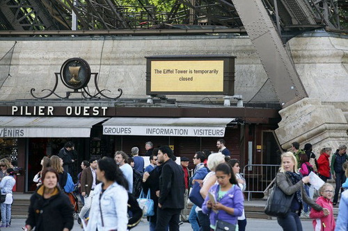 La société qui gère la tour a dit qu'elle n'a pas ouvert vendredi parce que le personnel s'inquiétait de la petite criminalité autour du site et elle travaille avec la police pour trouver une solution. En attendant, des foules de touristes se sont rassemblées autour du monument, dé?us de ne pouvoir y entrer. La tour est normalement ouverte tous les jours de l'année, mais ferme parfois brièvement en cas de grèves ou d'alertes à la bombe. Les employés du Louvre avaient déjà organisé un débrayage similaire en 2012, se plaignant d'un problème croissant de pickpockets hantant les vastes galeries du célèbre musée parisien.
