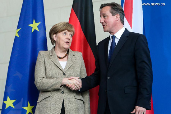 S'exprimant lors d'une conférence de presse commune avec M. Cameron à Berlin, Mme Merkel a clairement fait comprendre qu'elle souhaite voir la Grande-Bretagne rester au sein de l'UE.