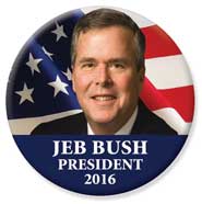 | Un badge de promotion de la campagne de Jeb Bush. |