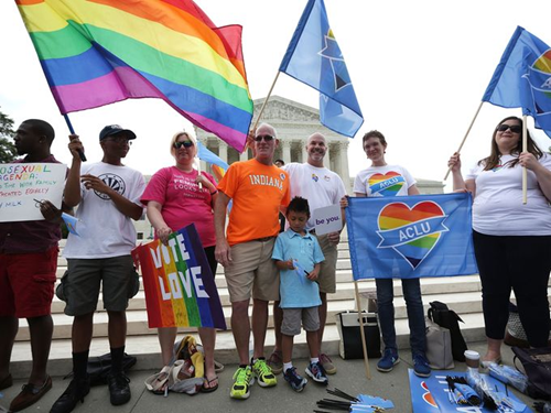 | Des tenants du mariage homosexuel fêtent la décision de la Cour suprême. |