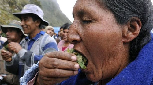 Macher des feuilles de coca est une tradition vieille de plusieurs siècles dans les Andes, où elles sont utilisées pour lutter contre le mal de l'altitude. Beaucoup de Boliviens indigènes considèrent le coca?er comme une plante sacrée et macher ses feuilles ou les infuser dans un thé est très populaire. La Constitution de 2009 de la Bolivie a même déclaré la feuille de coca ? patrimoine culturel ? et elle est même considérée comme une plante sacrée.