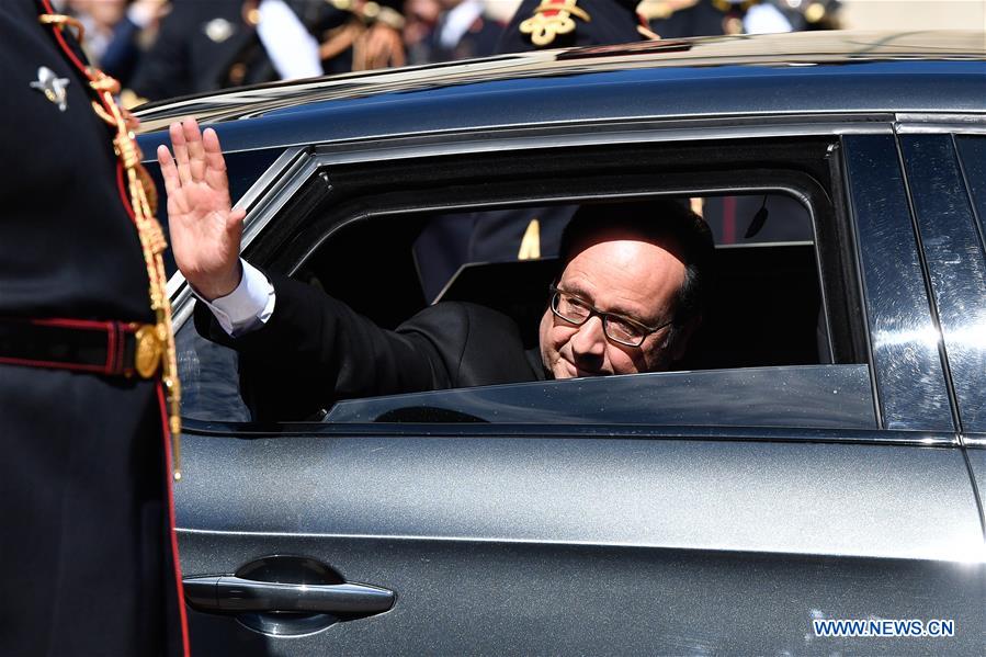 Conformément au protocole, Emmanuel Macron a ensuite raccompagné Fran?ois Hollande à sa voiture et a commencé la cérémonie d'investiture à proprement parler. Suite à la proclamation officielle des résultats de l'élection présidentielle, la remise du grand collier de la légion d'honneur, le président élu s'est exprimé devant quelque 300 invités.