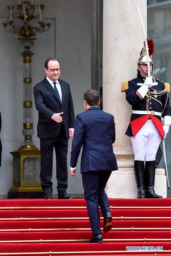 Une semaine après avoir remporté le second tour de l'élection présidentielle face à la candidate d'extrême droite Marine Le Pen, le nouveau président Emmanuel Macron a été accueilli dimanche à 10 heures par le président sortant Fran?ois Hollande, sur le perron de l'Elysée, pour le coup d'envoi de la passation des pouvoirs.