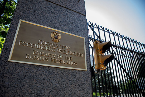 Photo prise le 8 ao?t 2018 montrant le portail de l'ambassade de Russie à Washington, aux Etats-Unis. (Xinhua/Ting Shen)