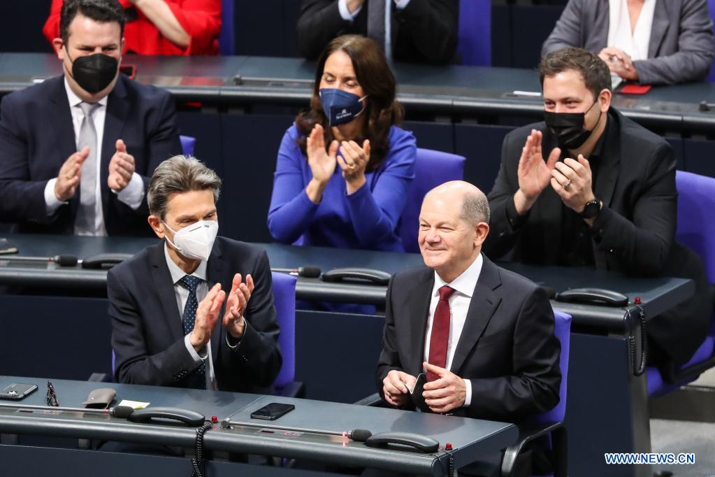 Selon le Bundestag, chambre basse du Parlement allemand, parmi les 736 députés, 395 députés ont voté pour M. Scholz, 303 contre et 6 se sont abstenus.