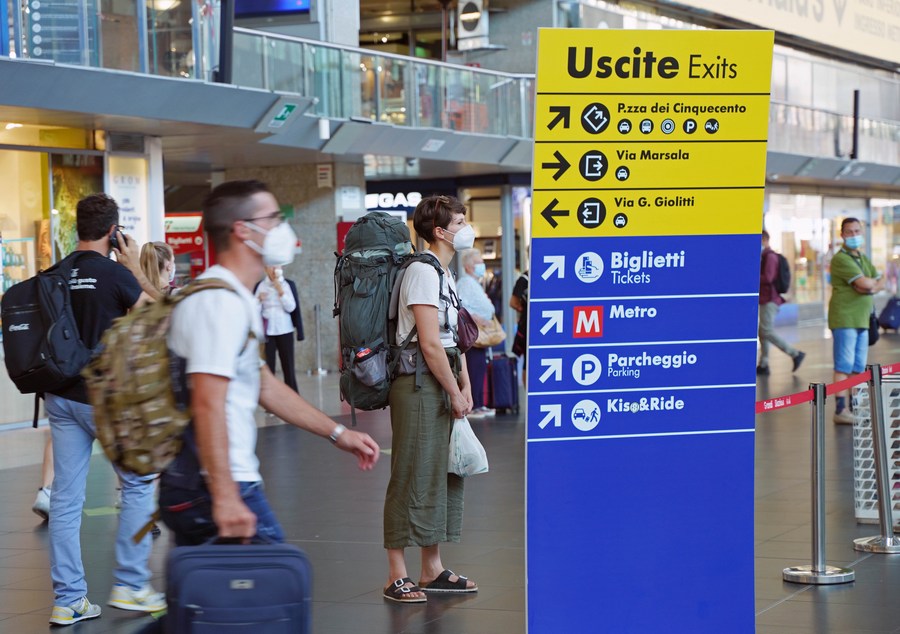 Des voyageurs portant des masques à la gare de Rome, en Italie, le 1er septembre 2021. (Xinhua/Jin Mamengni)