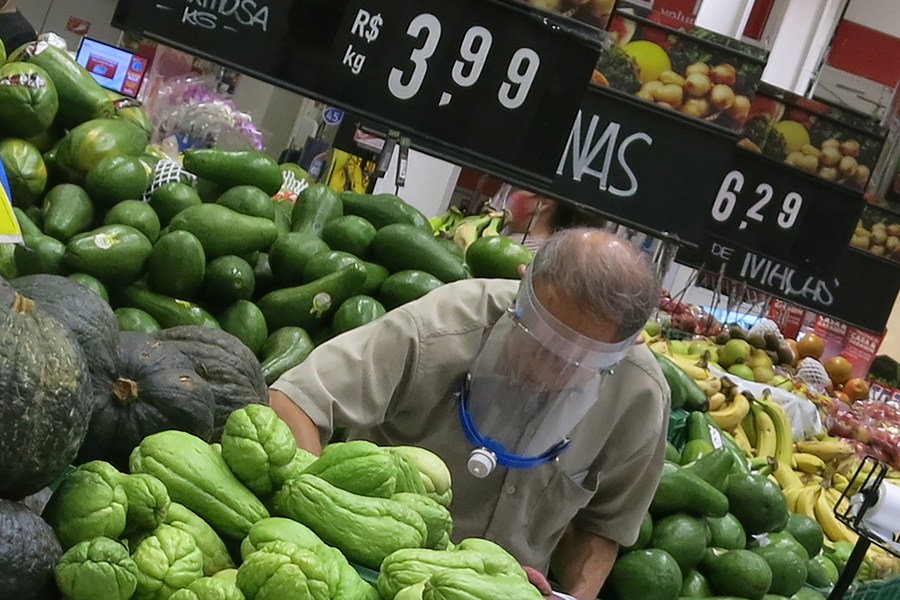 Un homme fait des courses dans un supermarché à Sao Paulo, au Brésil, le 25 juin 2020. (Xinhua/Rahel Patrasso)