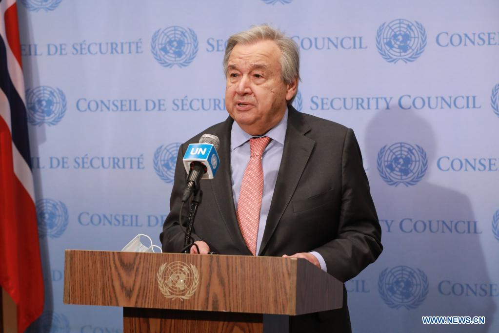 Plus t?t lundi, M. Guterres a eu une réunion virtuelle avec le ministre russe des Affaires étrangères Sergue? Lavrov et s'est également entretenu séparément avec le ministre ukrainien des Affaires étrangères Dmytro Kuleba.