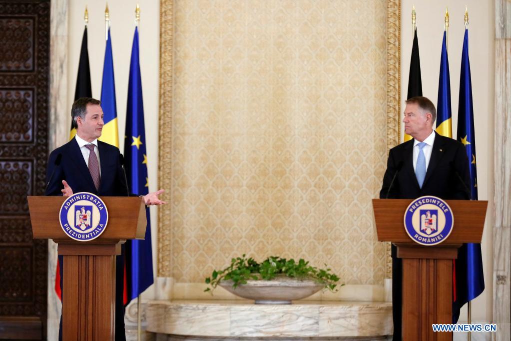 Le Premier ministre belge Alexander De Croo et le président roumain Klaus Iohannis (D). (Xinhua/Cristian Cristel)