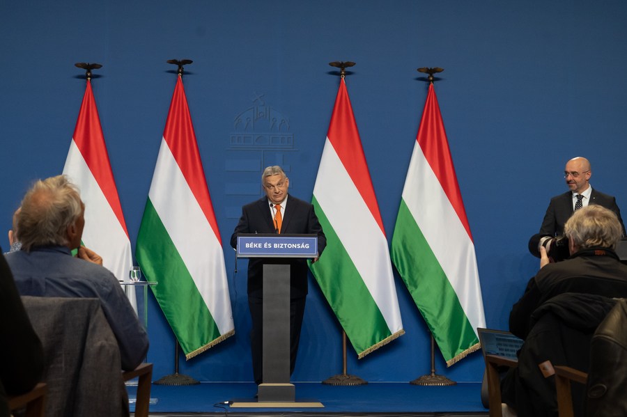 Le Premier ministre hongrois Vickor Orban s'exprime lors d'une conférence de presse à Budapest, en Hongrie, le 6 avril 2022. (Xinhua/Attila Volgyi)