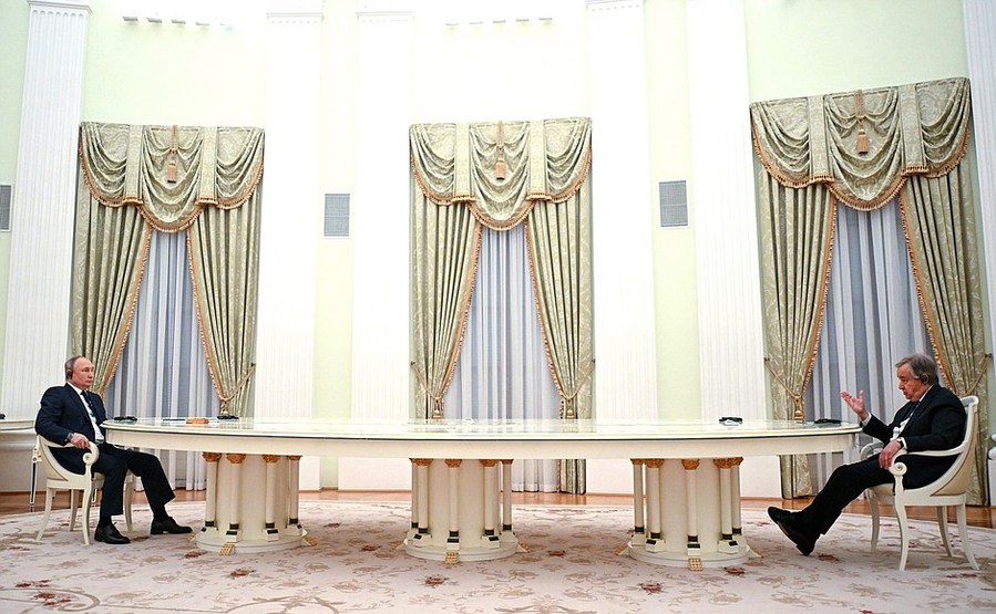 Le président russe Vladimir Poutine (à gauche) rencontre le secrétaire général de l'ONU Antonio Guterres au Kremlin, à Moscou, en Russie, le 26 avril 2022. (Photo du Kremlin)