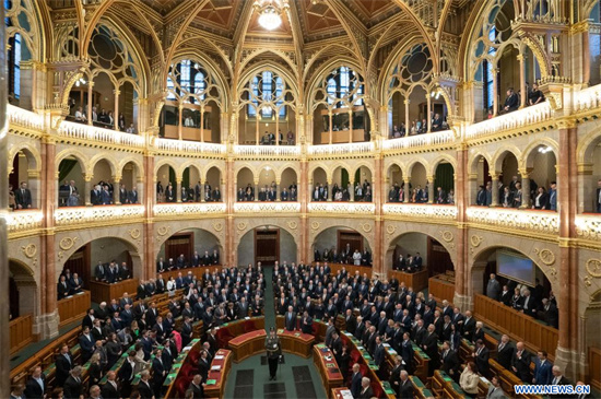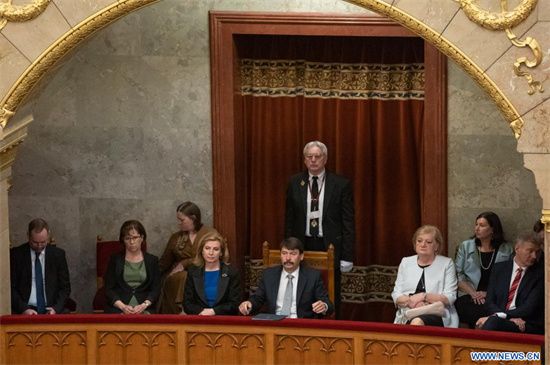 Le président Janos Ader a ouvert le nouveau parlement pour la troisième et dernière fois, puisque son mandat expirera dans quelques jours ; il sera remplacé par Katalin Novak, la première femme présidente de Hongrie.