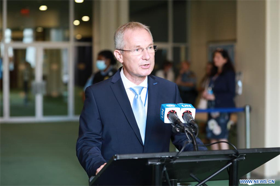 Le diplomate hongrois Csaba Korosi prend la parole après son élection en tant que président de la 77e session de l'Assemblée générale des Nations Unies au siège de l'ONU à New York, aux Etats-Unis, le 7 juin 2022. Csaba Korosi a été élu ce mardi président de la 77e session de l'Assemblée générale des Nations Unies. (Xinhua/Xie E)