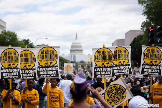 Des milliers d'Américains venus de tout le pays se sont rassemblés samedi dans le centre-ville de Washington pour attirer l'attention sur les conditions de vie des personnes à faibles revenus, réclamant aux décideurs politiques davantage d'actions pour les aider.