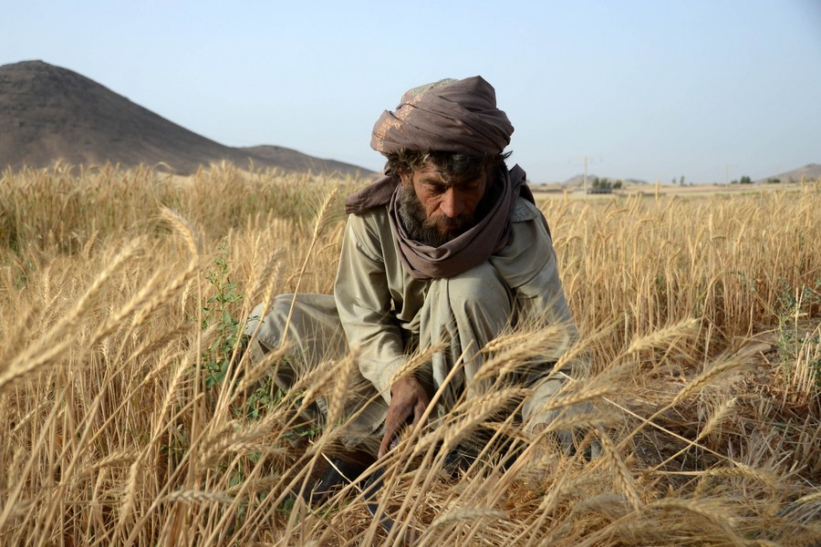 Un agriculteur afghan récolte du blé dans le district de Zhari, dans la province de Kandahar, en Afghanistan, le 9 mai 2022. (Xinhua/Sanaullah Seiam)
