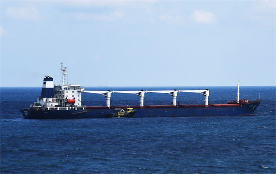 Le premier navire transportant des céréales exportées d'Ukraine subit une inspection effectuée par des représentants du Centre conjoint de coordination (CCC) à l'entrée nord-ouest du détroit du Bosphore à Istanbul, en Turquie, le 3 ao?t 2022. (Xinhua/Shadati)