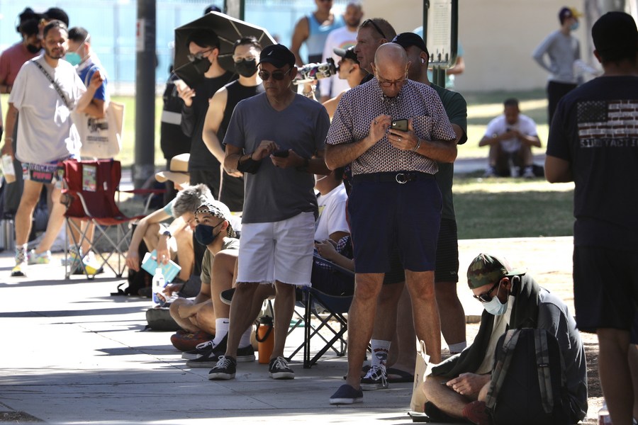 Des gens font la queue pour se faire vacciner contre la variole du singe dans un centre de vaccination à Los Angeles, aux Etats-Unis, le 6 ao?t 2022. (Xinhua)