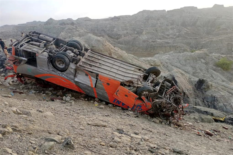 L'accident s'est produit dans le district de Lasbela lorsque le chauffeur a perdu le contr?le du véhicule qui roulait à vive allure en raison d'une défaillance des freins. Les passagers se rendaient en pèlerinage en Iran depuis la province orientale du Pendjab, ont indiqué à Xinhua des sources du district.