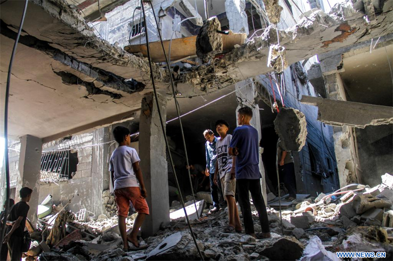 | Des Palestiniens examinent un batiment détruit par des avions de guerre israéliens dans le camp de réfugiés de Jabalia, dans le nord de la bande de Gaza, le 28 ao?t 2024. Au cours des dernières 24 heures, l'armée israélienne a tué 58 personnes et en a blessé 131 autres, portant le nombre total de décès à 40.534 et de blessés à 93.778 depuis le début du conflit israélo-palestinien, ont indiqué mercredi les autorités sanitaires de Gaza dans un communiqué. (Xinhua/Mahmoud Zaki) |