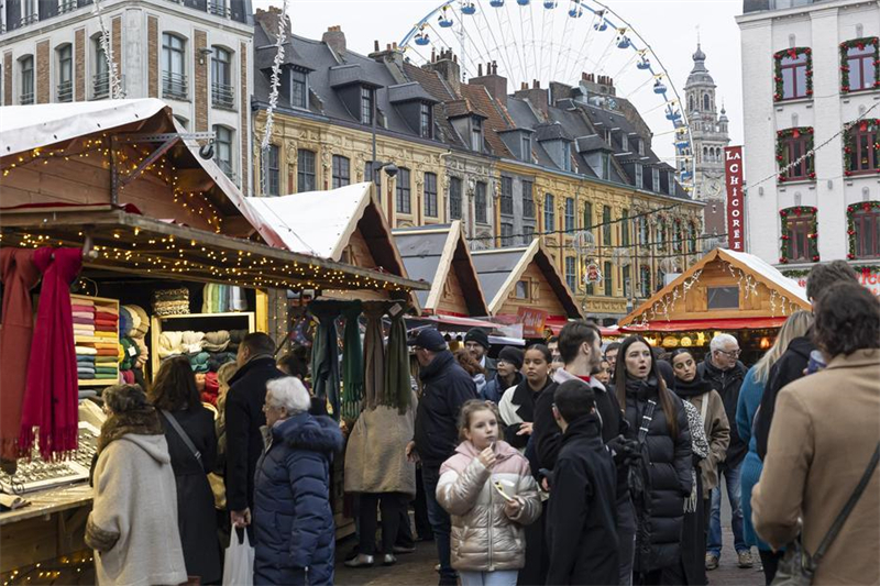 | Des visiteurs au marché de No?l de Lille, dans le nord de la France, le 30 novembre 2024. (Xinhua/Sebastien Courdji) |