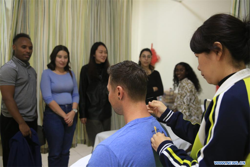 Au cours de cet événement, Tang Limei, membre de la 20e équipe médicale chinoise à Malte, a donné un cours sur les techniques de massage des points d'acupuncture et guidé les étudiants grace à des exercices pratiques.