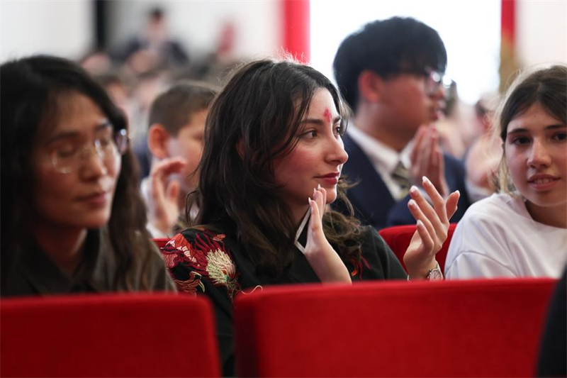 | Des élèves assistent à un événement culturel chinois intitulé "Célébrer le printemps" à Rome, en Italie, le 8 avril 2025. (Xinhua/Li Jing) |