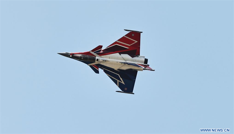 | Un avion de combat Rafale vole lors d'un spectacle aérien lors de la 55e édition du Salon international de l'aéronautique et de l'espace, qui se tient à l'aéroport du Bourget, près de Paris, en France, le 17 juin 2025. L'événement a officiellement ouvert ses portes lundi et se poursuivra jusqu'au 22 juin, avec la participation d'environ 2.400 exposants venus de 48 pays et régions. (Xinhua/Gao Jing) |