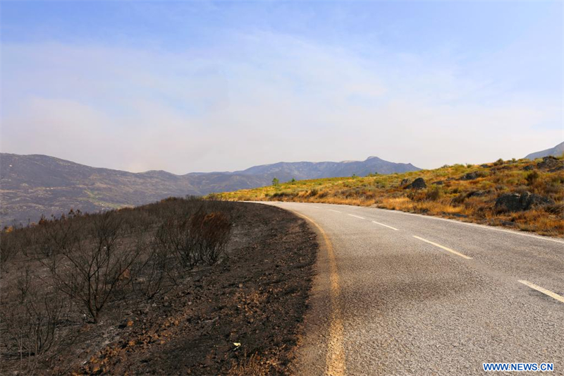 | Photo montrant les montagnes ravagées par les incendies près d'Unhais da Serra, au Portugal, le 23 ao?t 2025. (Xinhua/Xun Wei) |
